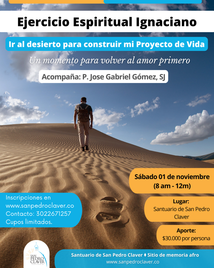 El sábado 01 de noviembre, desde el Santuario de San Pedro Claver desarrollaremos nuestro próximo Ejercicio Espiritual Ignaciano Presencial.